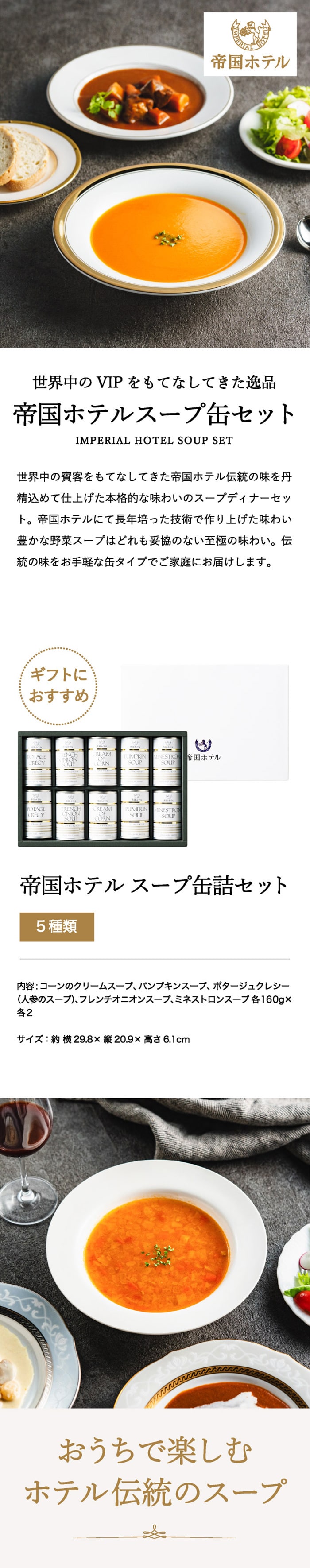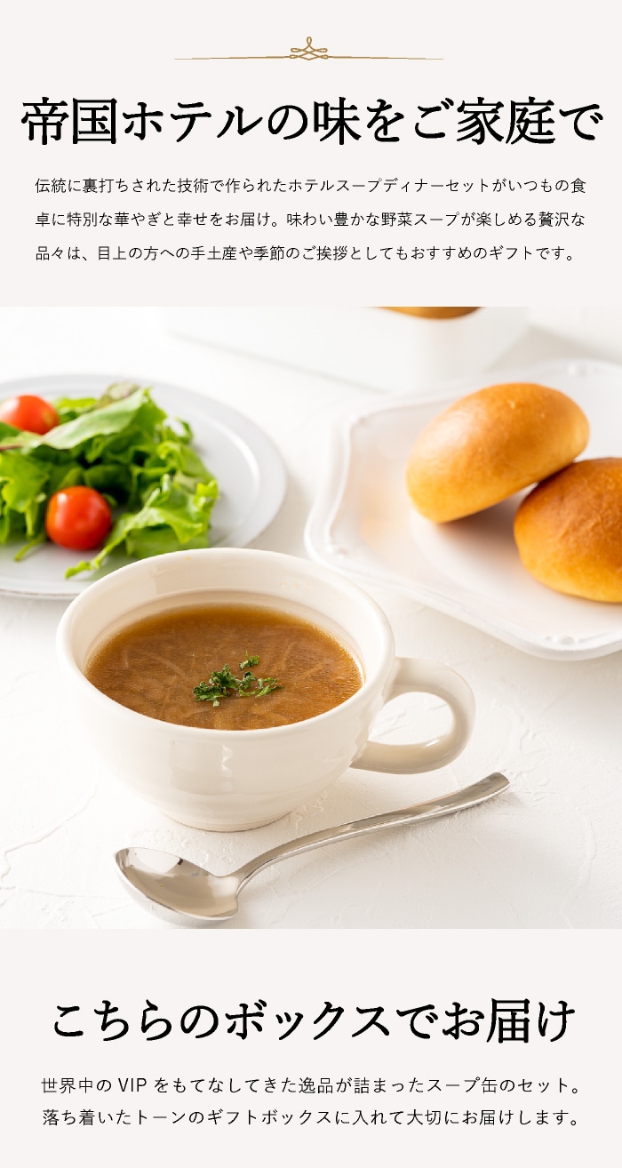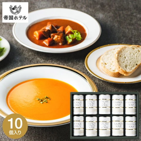 送料無料 グルメ 帝国ホテル スープ缶詰セット 10缶 TS-50 / 缶詰 高級 内祝い 出産内祝い 結婚内祝い お返し 詰め合わせ ギフトセット 写真入り メッセージカード