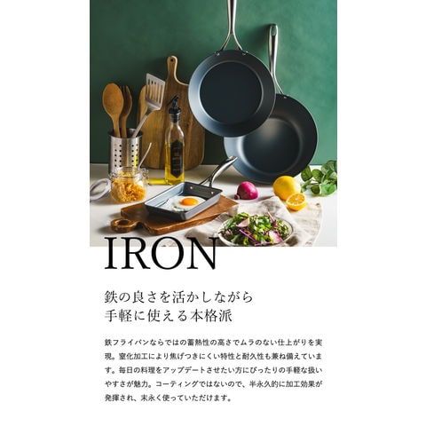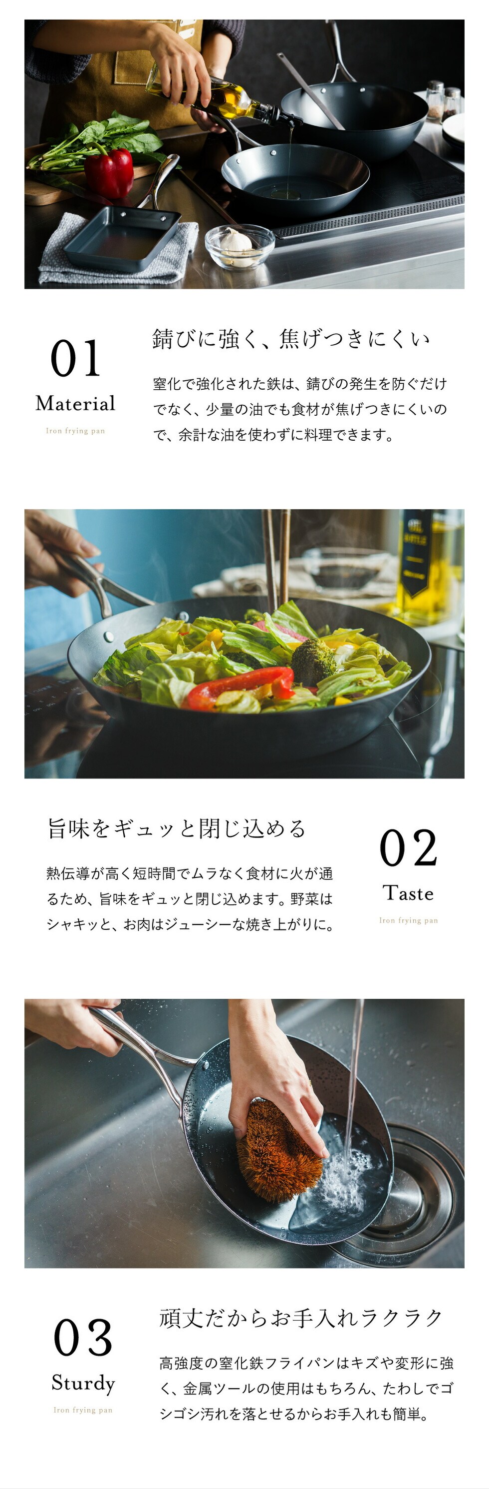 ●本体:鉄(窒化膜加工+窒化処理加工)、ハンドル:ステンレス