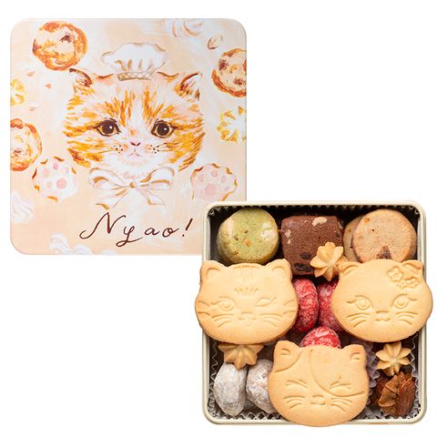 ホワイトデー お返し お菓子 ギフト こねこのこねこねクッキー缶 Happy Nyao Thank you 送料無料 のし包装不可 かわいい 猫 缶 ネコ 焼き菓子 クッキー スイーツ 内祝い 出産内祝い 結婚内祝い 結婚祝い 贈答品 JGS / Nyao