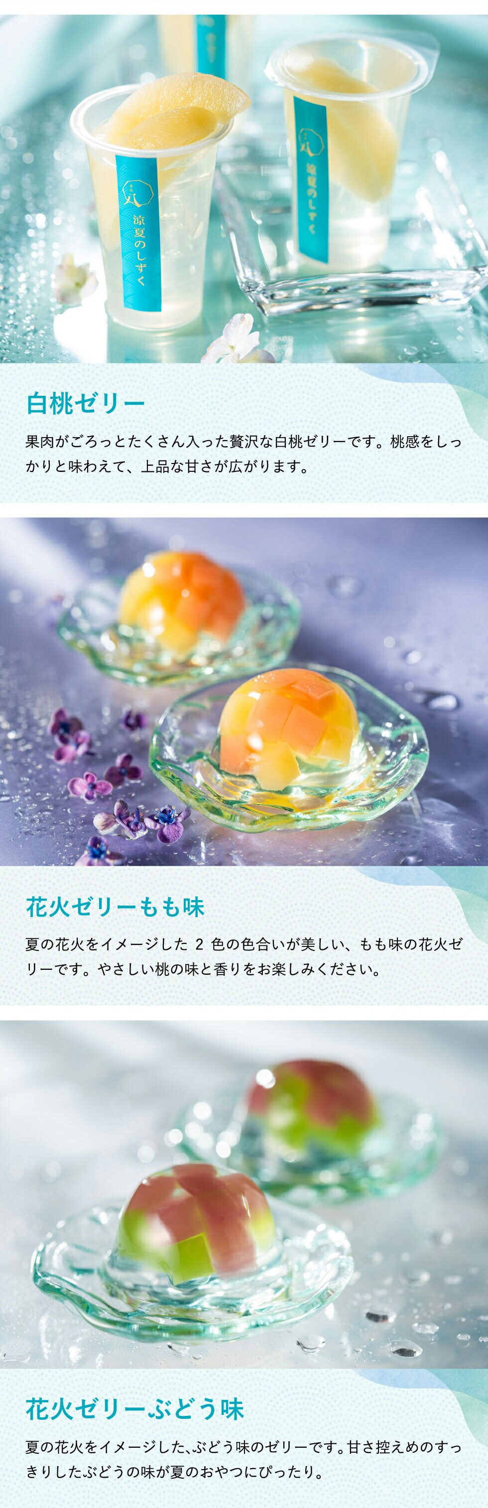 お中元 スイーツ ゼリー 送料無料 御中元専用 菓匠八 涼夏のしずく(14個) HRS30 (包装済、お中元用途シール付き) / 夏 ギフト 詰合せ 詰め合わせ セット 花火ゼリー お魚ゼリー 白桃ゼリー デザート かわいい ギフトセット お菓子