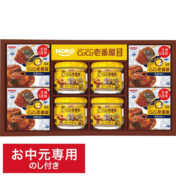 CoCo壱番屋監修のさばカレー缶とザクザク食べるオリーブオイルのギフトセットです。ご自宅で本格的なカレー風味の缶詰・瓶詰を召し上がっていただけます。