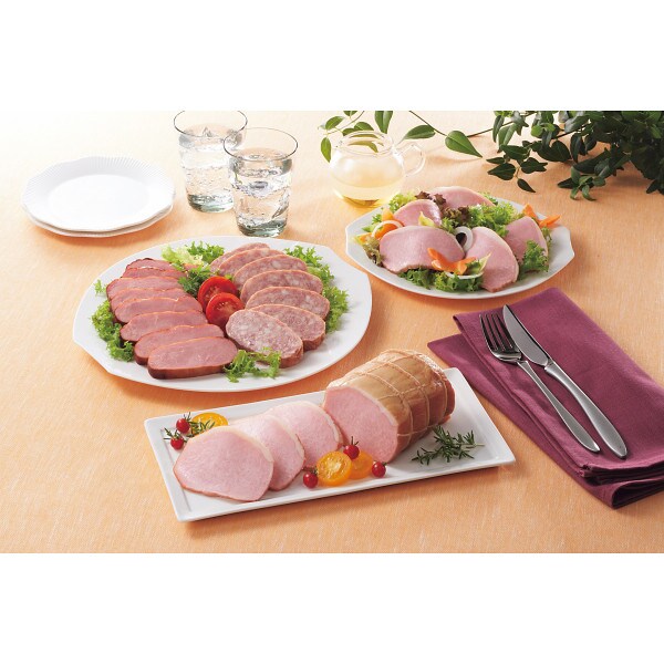 ●商品内容:特選(ロースハム360g、燻しあらびきヴルスト・炙り焼あらびきポーク各160g、炙り焼あらびきステーキ110g、あらびき燻しウインナー・あらびき芳醇ウインナー各80g)、焼豚二段加熱仕立て160g