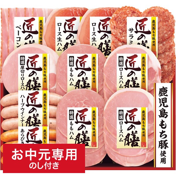 ●商品内容:鹿児島もち豚使用(特選ロースハム36g×2、特選ももハム40g×2、特選厚切りロースハム45g、ベーコン40g、ロース生ハム32g×2、あらびきウインナー70g、ハーブウインナー70g、サラミ36g)