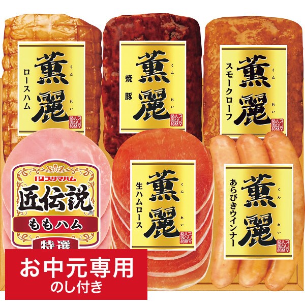 ●商品内容:特級ロースハム180g、焼豚120g、スモークローフ140g、特選ももハム40g、生ハムロース32g、あらびきウインナー60g