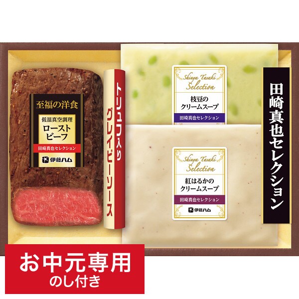 お中元 グルメ 送料無料 伊藤ハム 至福の洋食 田崎真也セレクション ローストビーフと2種のスープギフト YS-3T メーカー直送 / LTDU 和食惣菜 洋食惣菜 肉惣菜 2025 夏ギフト 御中元専用 贈答品 贈り物 詰合せ 詰め合わせ セット JGS