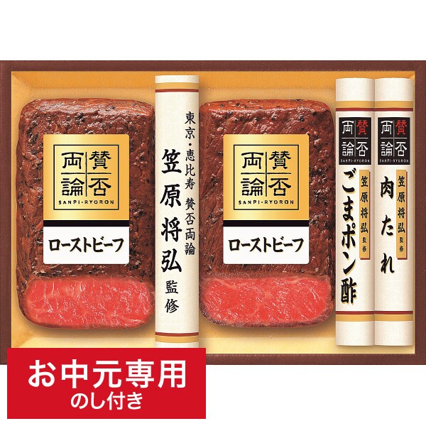 東京・恵比寿にある日本料理店「賛否両論」。店主の笠原将弘が監修した、和のローストビーフギフトです。ごまポン酢と肉たれの2種類のソースでお楽しみください。