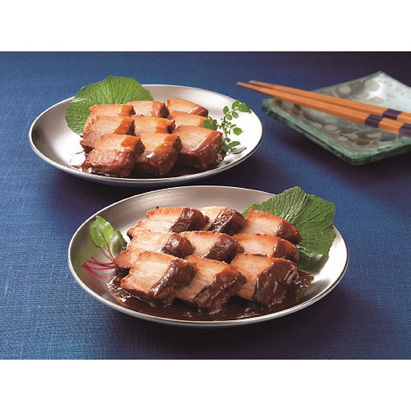 豚ばら肉のかたまりをじっくり煮込んで仕上げました。味噌・醤油の2種類の味をお楽しみください。 豚肉の味噌煮込み:豚ばら肉を赤だし味噌仕立てのたれで煮込んだ、ごはんやお酒のすすむ一品です。 豚肉の和醤煮込み:豚ばら肉をすっきりとした味わいのしょう油たれでやわらかく仕込み、ひと味違った煮豚に仕上げました。