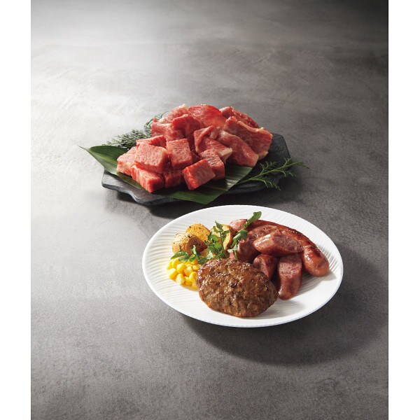 肉の旨みをたっぷり楽しめる精肉に、パリッと感がたまらないソーセージと肉汁あふれるハンバーグ。山形育ちのブランド牛を存分に味わえるセットです。