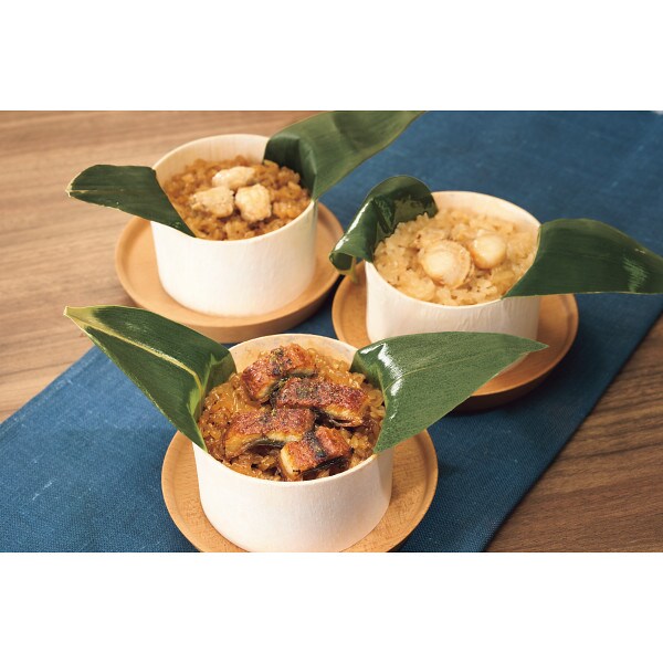 レンジでチンするだけ。ホカホカのおこわに舌鼓。縁起の良い食べ物といわれている「うなぎ、ほたて、ふく」の3つの味のおこわをお届けします。食べたい分だけレンジで温められて便利です。