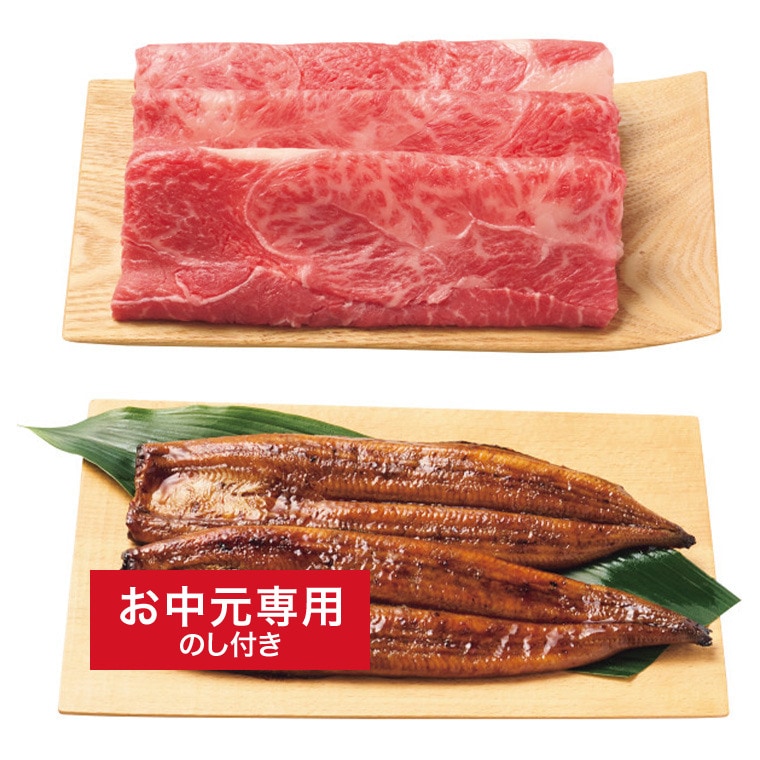 神戸ビーフのモモすき焼き用と香ばしくじっくり焼きあげ、丁寧に仕上げた鹿児島県産うなぎの蒲焼きとの詰合せです。