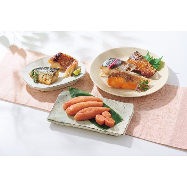 匠のたれに168時間じっくり漬け込んだまろやかでコクのある辛子明太子と、レンジで簡単に調理ができる焼き魚をセットにしました。