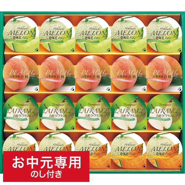 メロンの風味をそのまま生かしたメロンゼリーに、山形県産ラ・フランスピューレを使用し果実感たっぷりに仕上げたラ・フランスゼリー、桃の名産地山梨の白桃をとろけるようなおいしさに仕上げた白桃ゼリーなど、バラエティー豊富なゼリーギフトです。