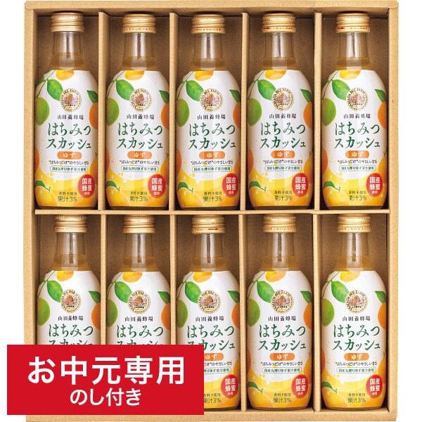 お中元 ジュース 送料無料 山田養蜂場 国産はちみつスカッシュ(10本) HS10-30 / LTDU ジュース詰め合わせ はちみつ 蜂蜜 2025 夏ギフト 御中元専用 贈答品 贈り物 詰合せ 詰め合わせ セット JGS