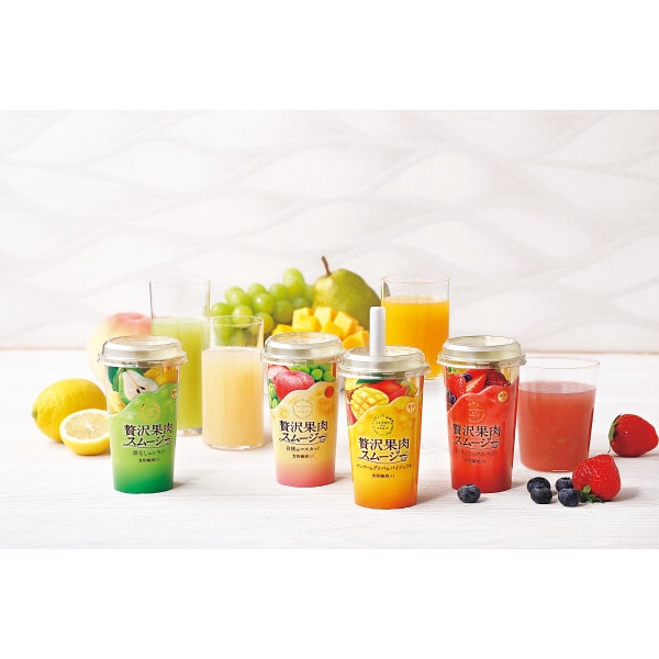 2種類以上の果実を合わせたミックスジュースをベースに、大ぶりにカットした果肉と濃厚なピューレを使用。角切りされた果肉とピューレの濃厚な味わいが広がります。付属の太ストローで、凝縮された果実感をお楽しみください。