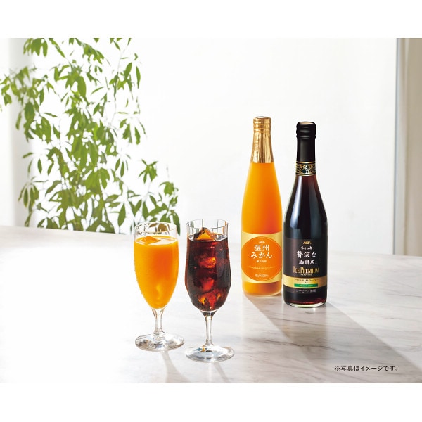 各生産国の最上級グレード豆を使用し素材と製法にこだわったプレミアムアイスコーヒーと、瀬戸内産のうんしゅうみかんを使用した果汁100%のストレートジュースが詰め合わされたギフトセットです。