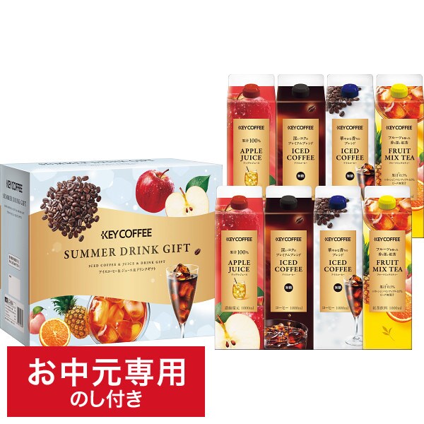 アイスコーヒーを中心に、アップルジュース、フルーツミックスティーを詰め合わせたファミリー向けのギフトです。