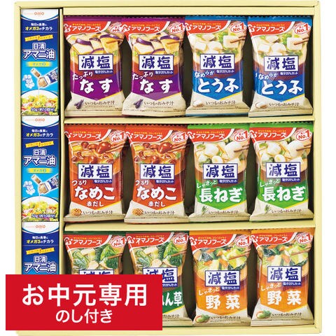 お中元 油 送料無料 日清オイリオ×アマノフーズ アマニ油とおみそ汁のここから始まる健康習慣ギフト MCNA-50A / LTDU オイルギフト 油セット 調味料セット 調味料ギフト 2025 夏ギフト 御中元専用 贈答品 贈り物 詰合せ 詰め合わせ JGS