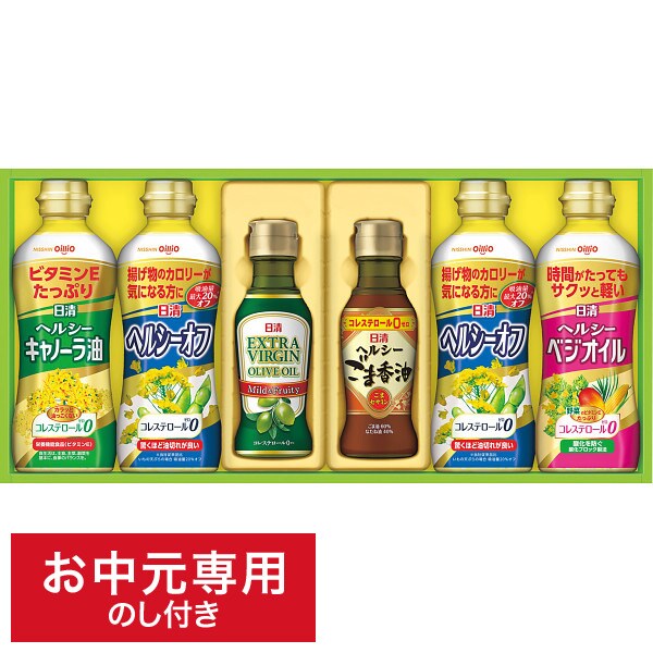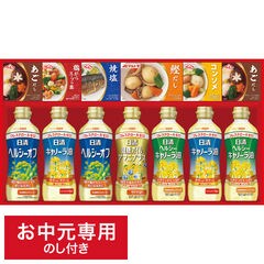 日清エキストラバージンオリーブオイルをはじめバラエティ豊かなヘルシーオイルを詰め合わせたギフトです。