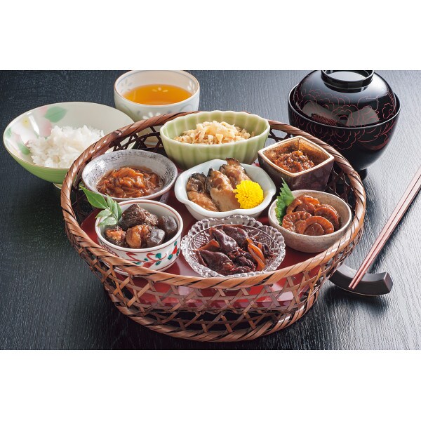 ●商品内容:なめ茸明太味・九条ねぎ味噌60g×各1、帆立しぐれ煮・牛すじ肉とこんにゃくの旨煮・かき浜焼・ほたるいかしぐれ煮50g×各1、真鯛ほぐし身30g×1(計7)