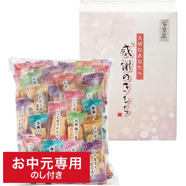 普段言葉では言い表せない「感謝のきもち」を個包装にデザインしたおかきの詰め合わせです。