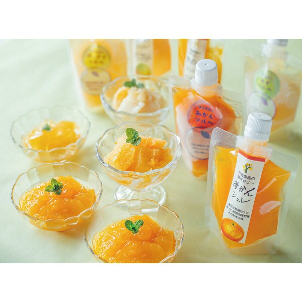 和歌山県産柑橘を粗糖と寒天で仕上げたジュレ。甘い~さっぱりまで4種をお楽しみ頂けるアソートセットです。