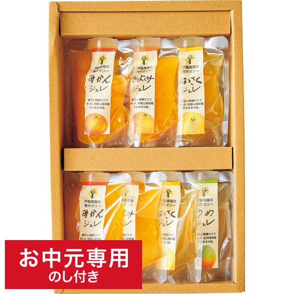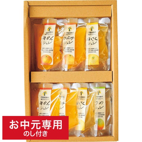 ●商品内容:ピュアフルーツ寒天ジュレ(みかん・きよみ・はっさく×各2、うめ×1)各150g