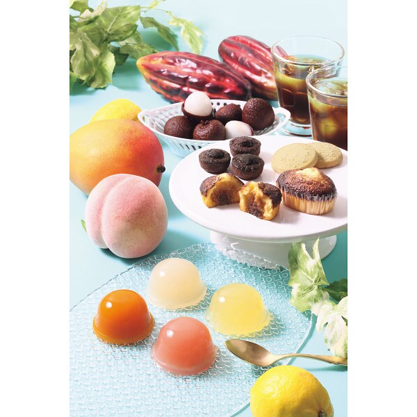 ●商品内容:焼きティラミス×5、ハイカカオブラウニー・芳醇チーズサブレ×各4、カカオフルーツゼリー×6(ライチ・マンゴー×各1、桃・レモン×各2)