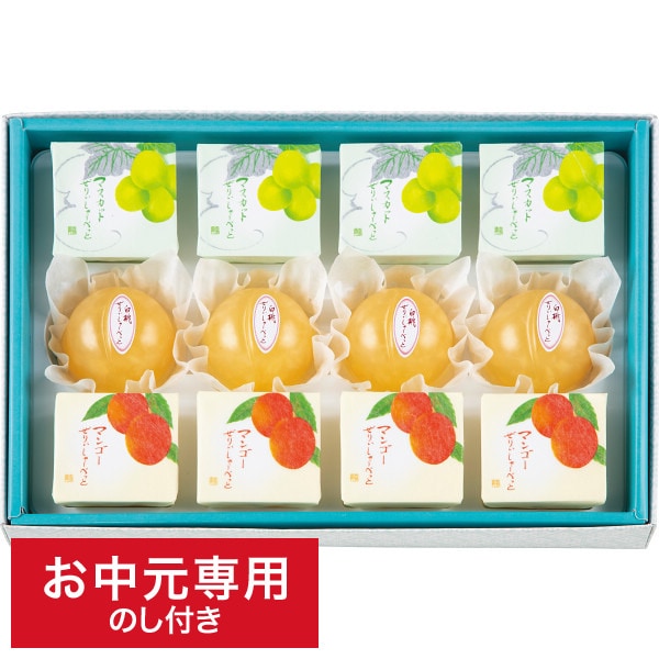 ●商品内容:マスカットぜりぃしゃーべっと・マンゴーぜりぃしゃーべっと各72g×各4、白桃ぜりぃしゃーべっと78g×4