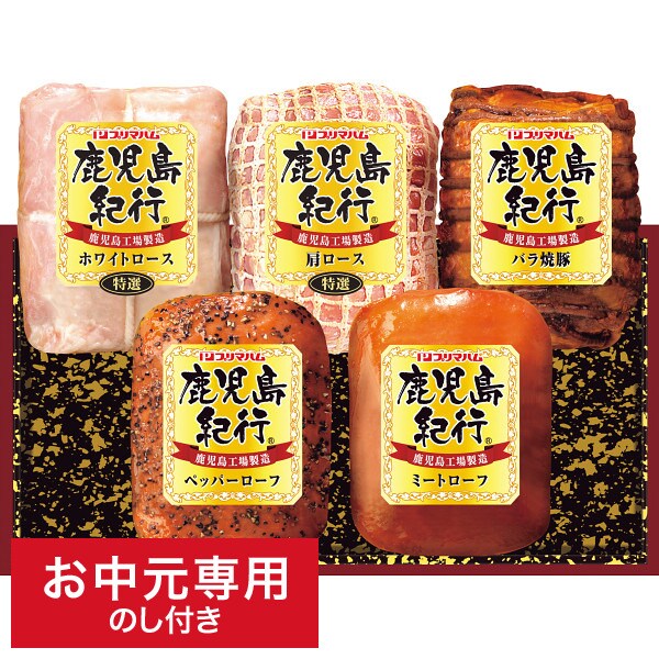 ●商品内容:鹿児島紀行(特選ホワイトロースハム300g、特選肩ロース210g、バラ焼豚200g、ペッパーローフ180g、ミートローフ160g)