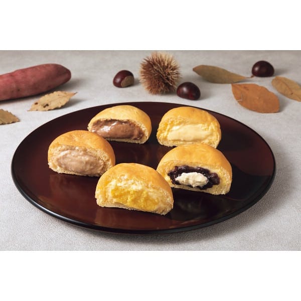 定番人気のくりーむパンに加えて、この季節限定の『マロン』『あんバター』を詰合せました。今年は新フレーバーの『おいも&カスタード』が登場。