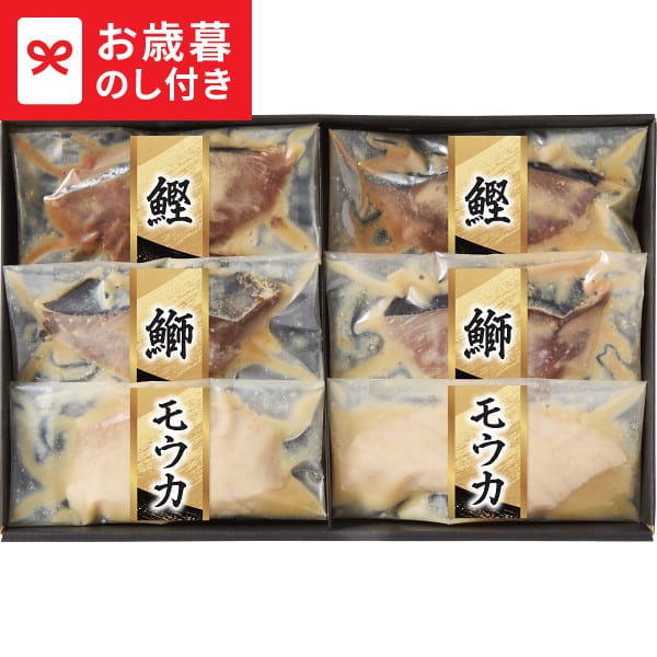 ●商品内容:[西京漬け]鰤(日本産)・鰹(ベトナム産)・モウカ(インド産)各60g×各2