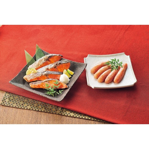 しっかりと脂がのった味わいが特徴の紅鮭と、168時間熟成した、まろやかで味わい深い明太子のセットです。