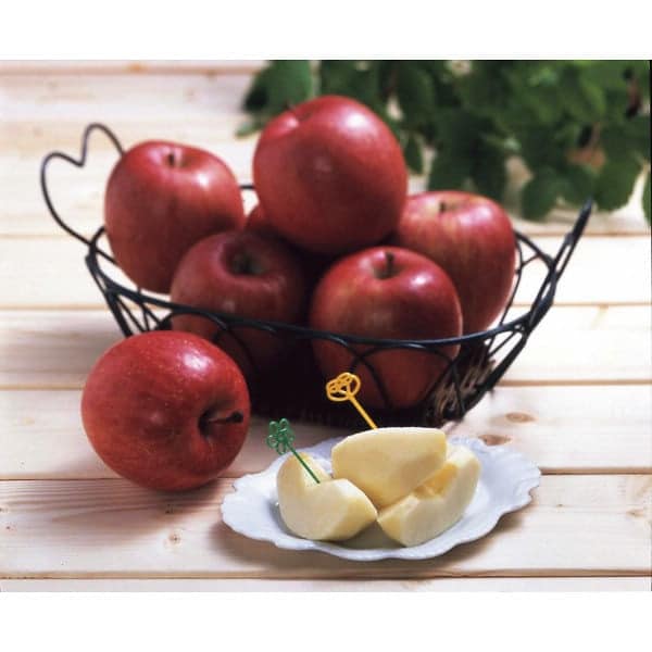 りんご生産量日本一の青森県で袋をかけずに太陽の光をいっぱいに浴びて育ったサンふじ。その中でも光センサーで糖度が14度以上あるものだけを選びました。