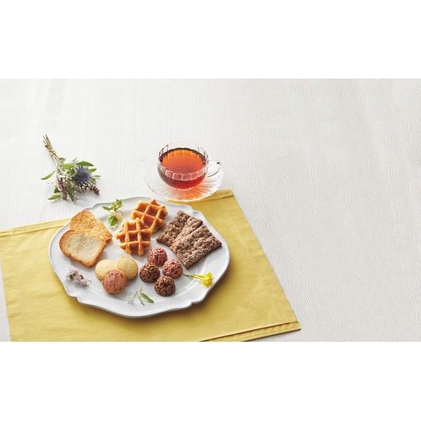 ●商品内容:焼きほろろクッキー×12(プレーン・いちご×各6)、スクエアパイ(ショコラ)×5、ワッフル(プレーン)×4、ラスク×6(シュガー・ココナッツ×各3)、チョコレートクランチ×4(ミルク・いちご×各2)
