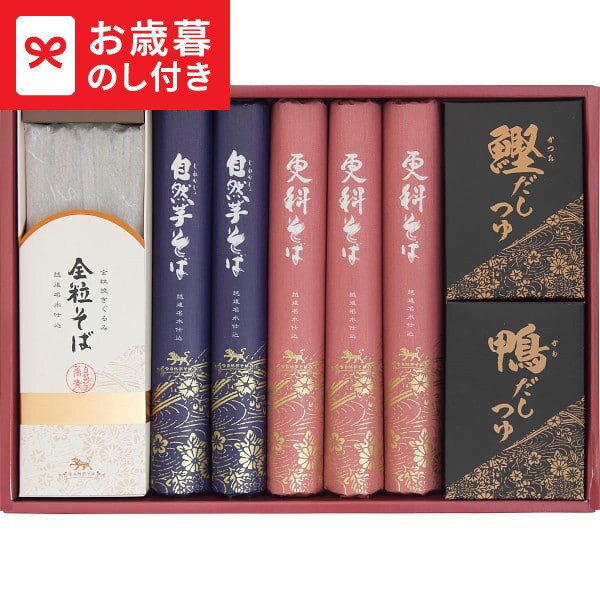 ●商品内容:自然芋そば180g×2、更科そば180g×3、全粒そば150g×1、鰹だしつゆ25g×4、鴨だしつゆ46g×3