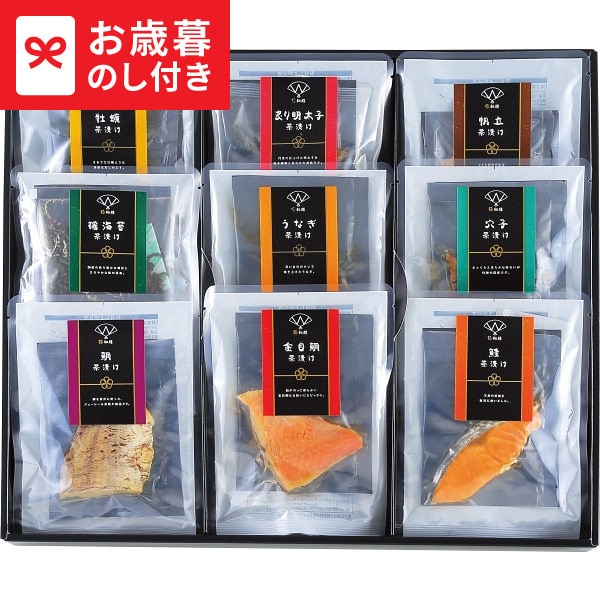 ●商品内容:お茶漬け(金目鯛・穴子・鮭・鯛・帆立・鰻・磯海苔・牡蠣・炙り明太子)各1、だしつゆ×9、具材×9