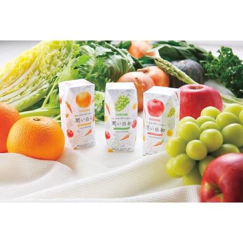 「潤い日和」ふじミックス・清見オレンジミックス・シャインマスカットミックスの3種を詰め合わせたギフトです。1本(200ml)に1食分の野菜120g分を使用しながら、フルーティーで贅沢な美味しさをお楽しみいただけます。