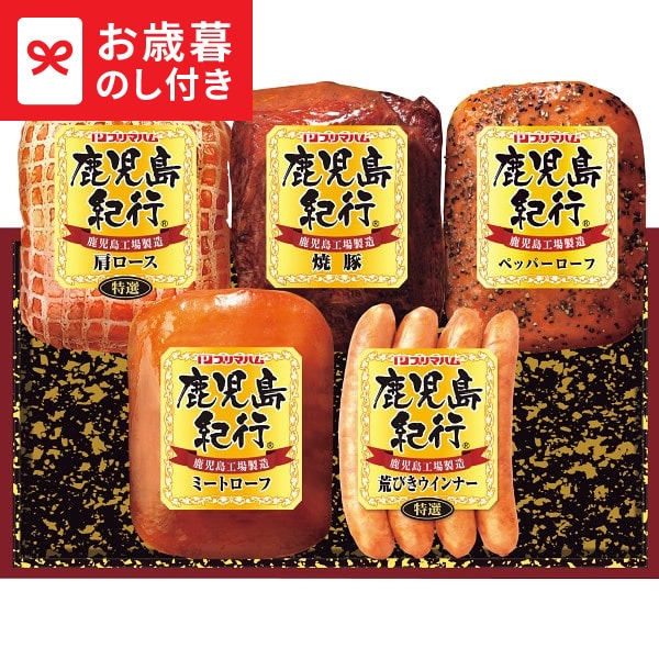 ●商品内容:鹿児島紀行(特選肩ロース180g、焼豚180g、ペッパーローフ140g、ミートローフ140g、特選荒びきウインナー80g)