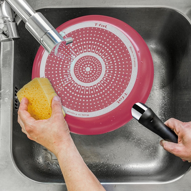 ふっ素樹脂加工の外面で、こびりつきにくく汚れがサッと落ちるので、毎日のお手入れも簡単です。
