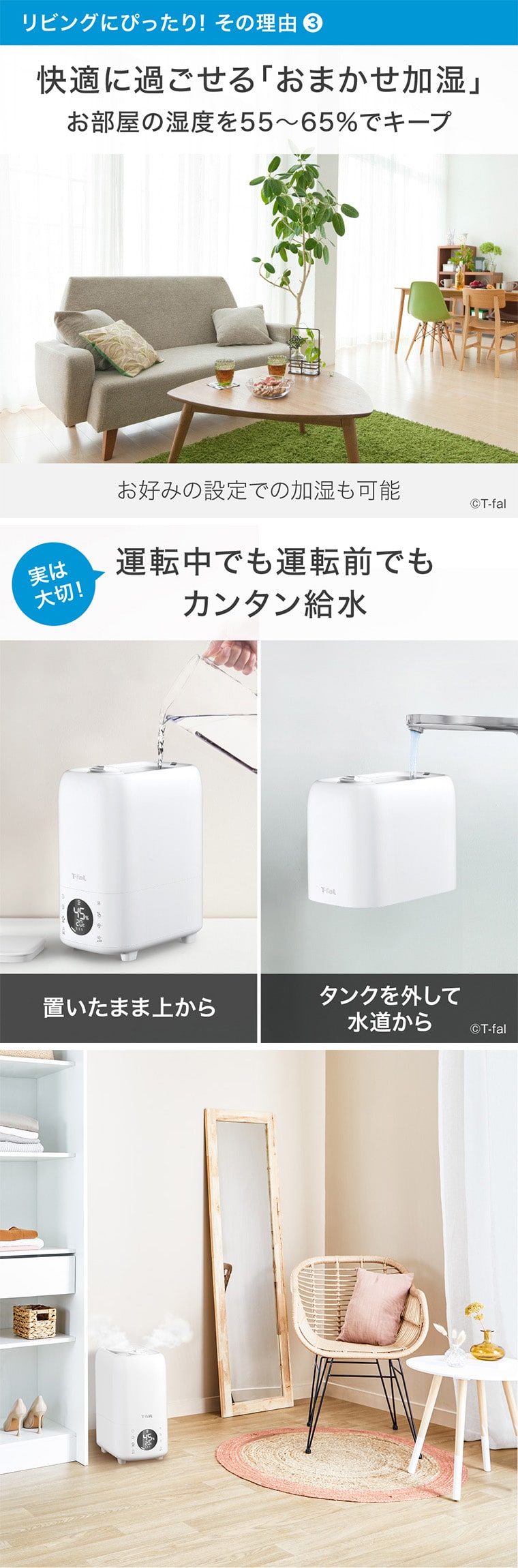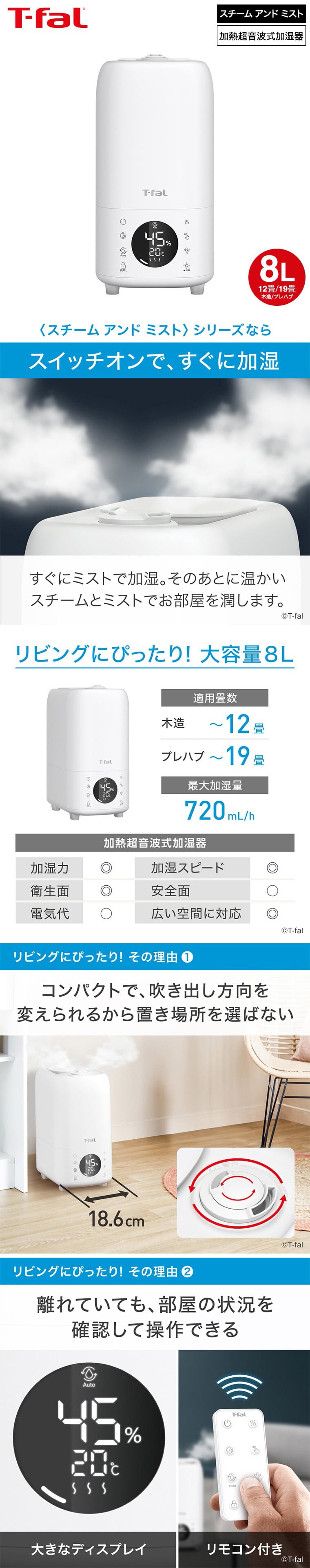ティファール T-fal 加熱超音波式加湿器 スチーム アンド ミストL 8L HD6080J0 送料無料 / 加湿器 超音波式 大容量タンク 上部給水 フィルター不要 お手入れ簡単 コンパクト アロマ チャイルドロック tfal JGS