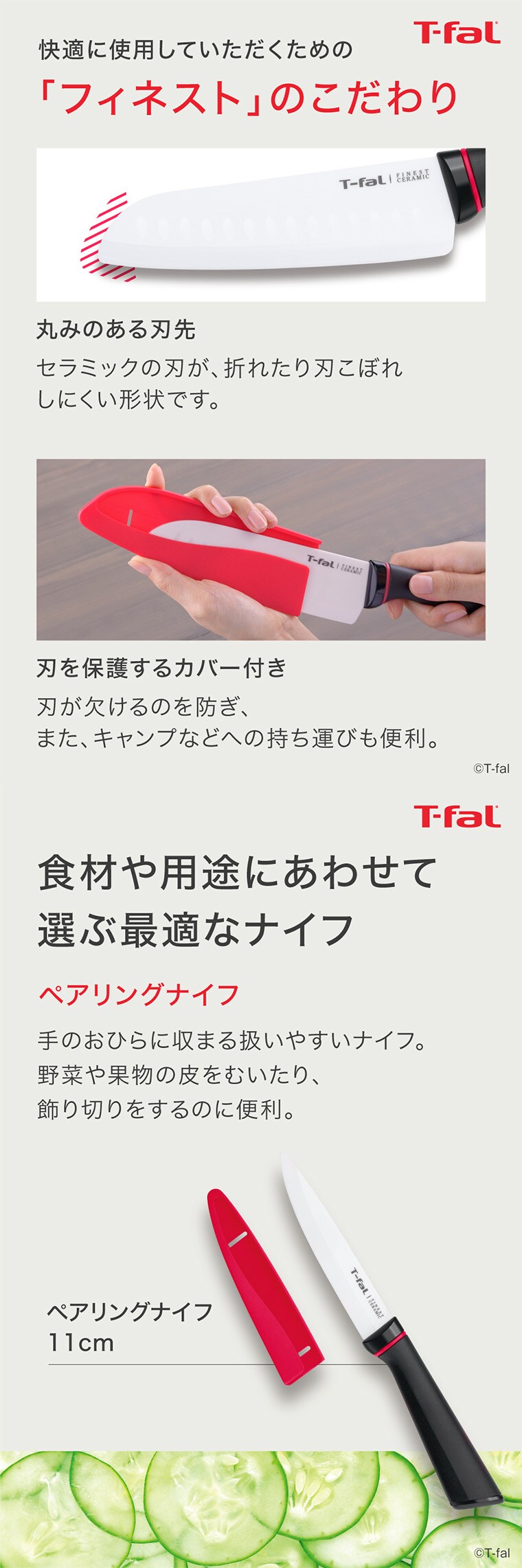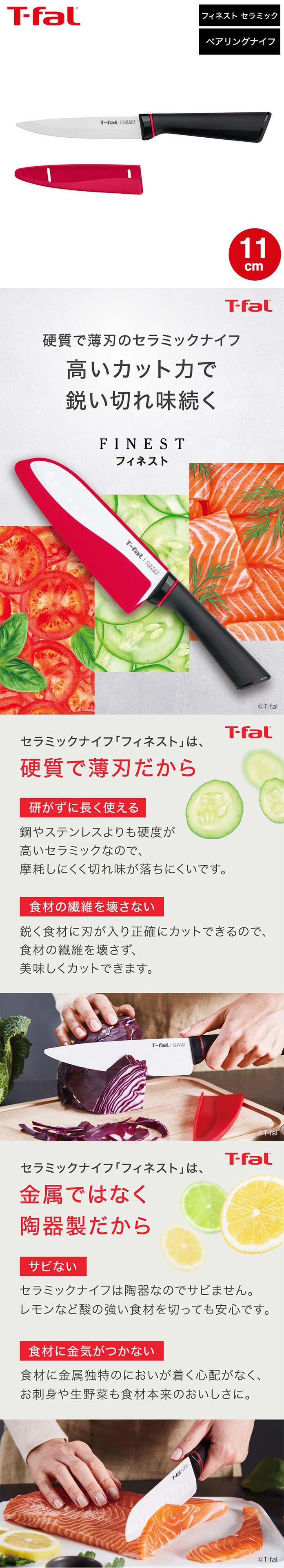 ティファール T-fal フィネスト セラミック ペアリングナイフ 11cm K17906 / 包丁 ペティナイフ ナイフ キッチンナイフ 果物ナイフ 食洗機対応 錆びない さびない 丈夫 調理器具 キッチンツール キッチン用品 tfal t-fal JGS