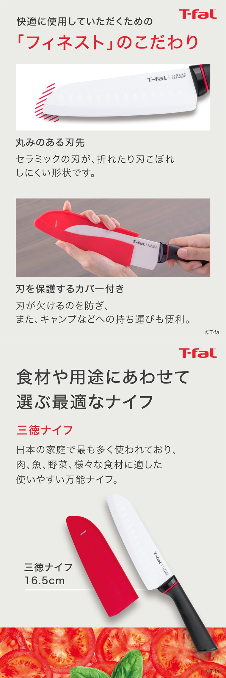 送料無料 ティファール T-fal フィネスト セラミック 三徳ナイフ 16.5cm K17905 / 三徳包丁 包丁 ナイフ キッチンナイフ 万能ナイフ 食洗機対応 さびない 丈夫 調理器具 キッチンツール キッチン用品 tfal JGS
