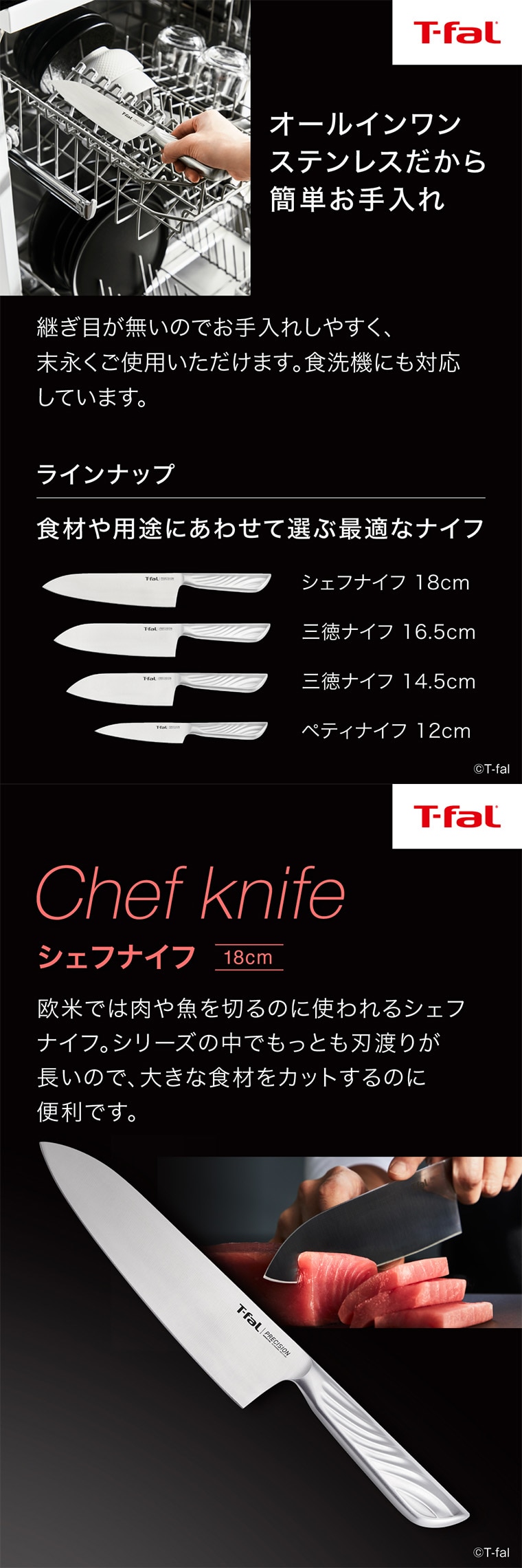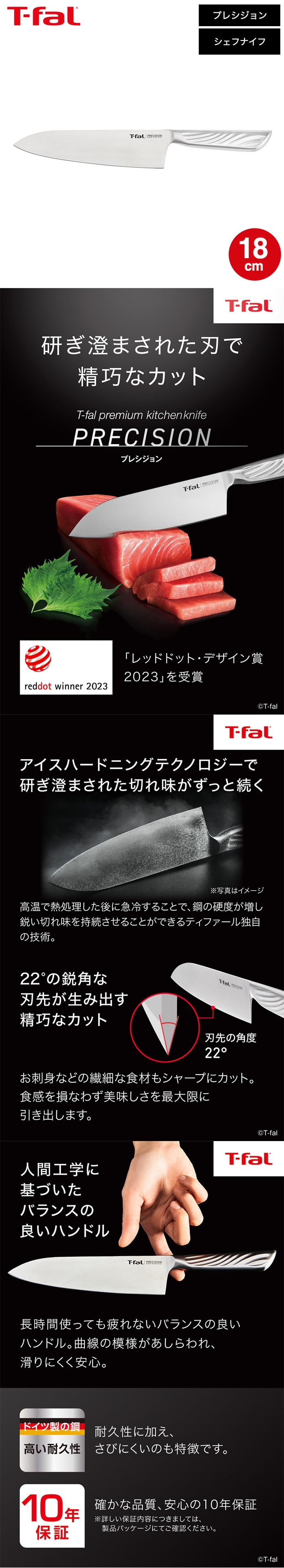 送料無料 ティファール T-fal プレシジョン シェフナイフ 18cm K27701 / 牛刀 包丁 三徳包丁 ナイフ キッチンナイフ 万能ナイフ 万能包丁 10年保証 食洗機対応 調理器具 キッチンツール キッチン用品 tfal JGS