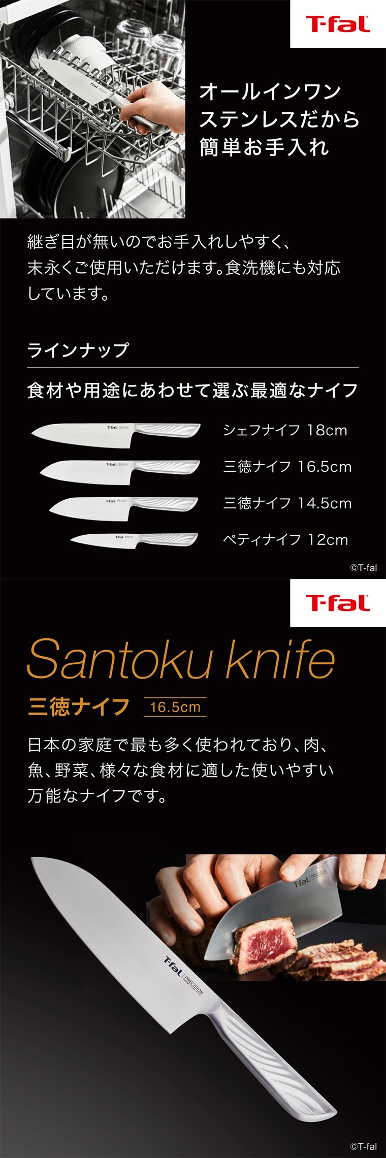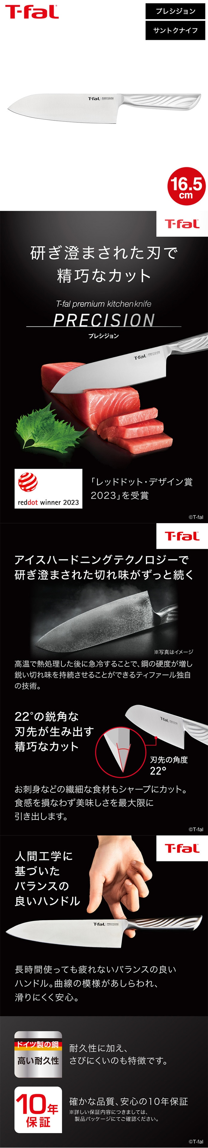 送料無料 ティファール T-fal プレシジョン 三徳ナイフ 16.5cm K27711 / 三徳包丁 包丁 ナイフ キッチンナイフ 万能ナイフ 万能包丁 食洗機対応 10年保証 丈夫 調理器具 キッチンツール キッチン用品 台所用品 JGS
