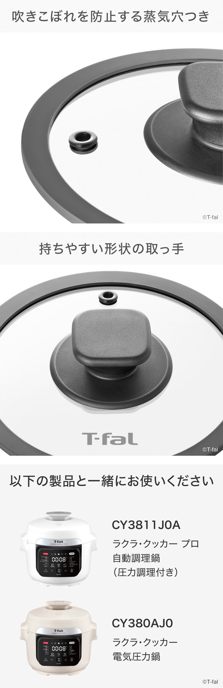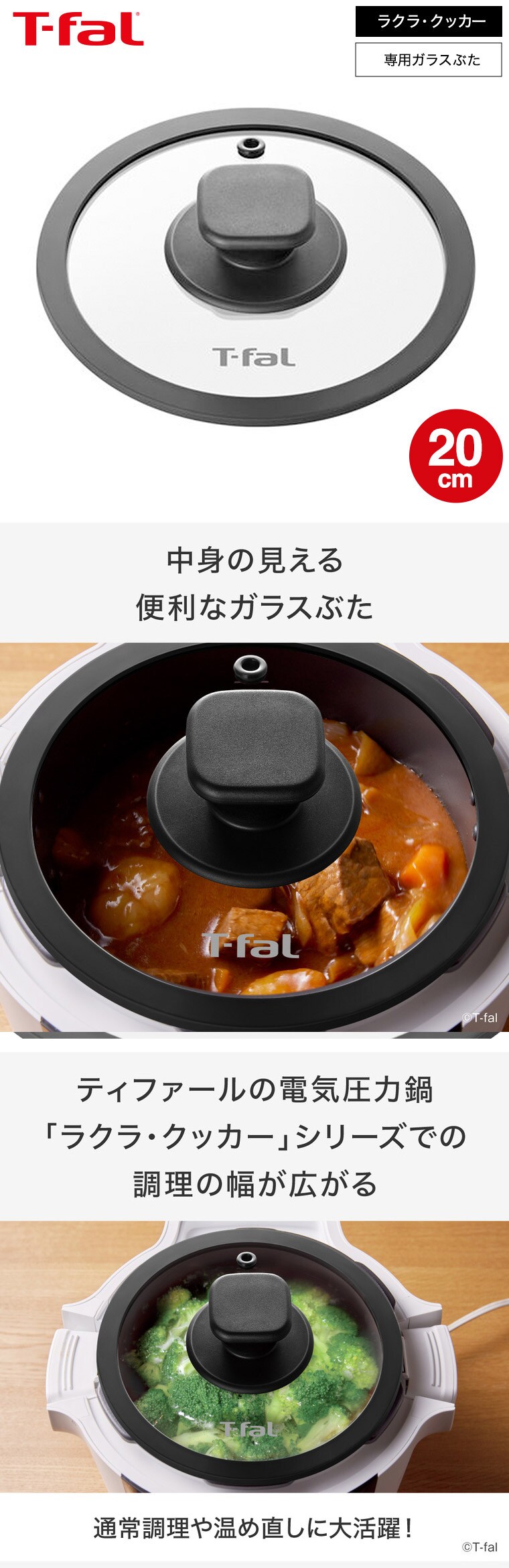 送料無料 ティファール T-fal ラクラ・クッカー専用 ガラスぶた(20cm) CY38電気圧力鍋用単品 XA381J0 / ラクラクッカー CY3811J0 CY380AJ0 圧力鍋 ガラス蓋 ガラスふた フタ カバー 温め直し 鍋 保管 煮込み 調理器具 tfal JGS