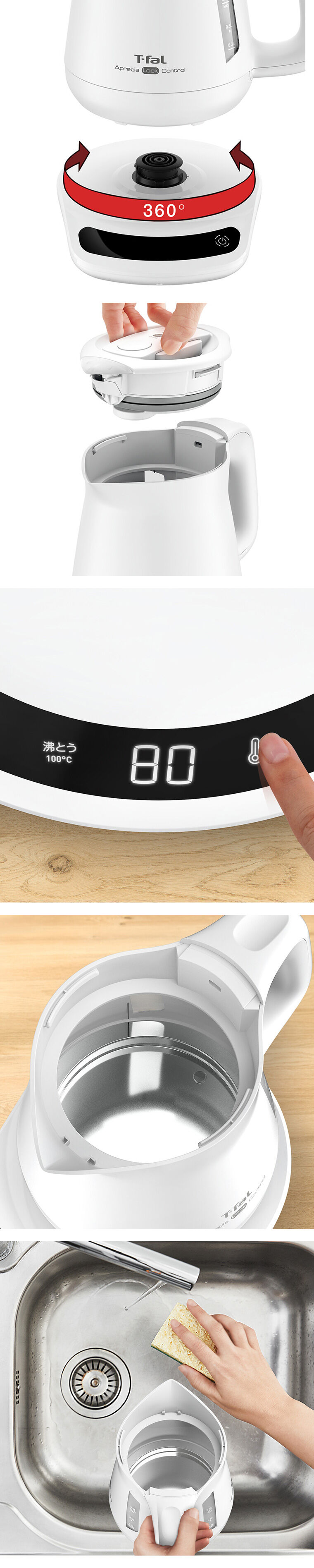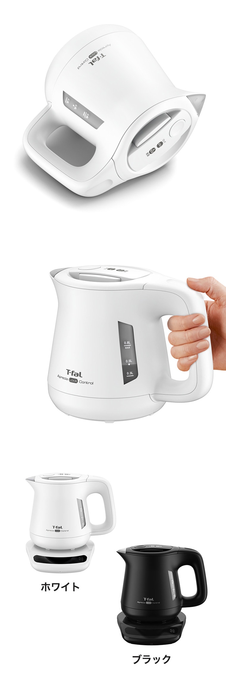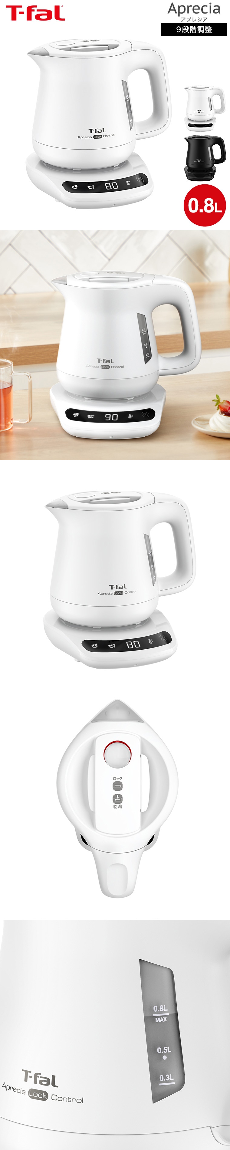 ティファール T-fal 電気ケトル アプレシア ロック コントロール 0.8L KO8601J0 KO8608J0 ホワイト ブラック 送料無料 / 湯沸かしポット 湯沸かし器 保温 60分 温度設定 9段階 転倒お湯もれロック 省スチーム JGS / ホワイト