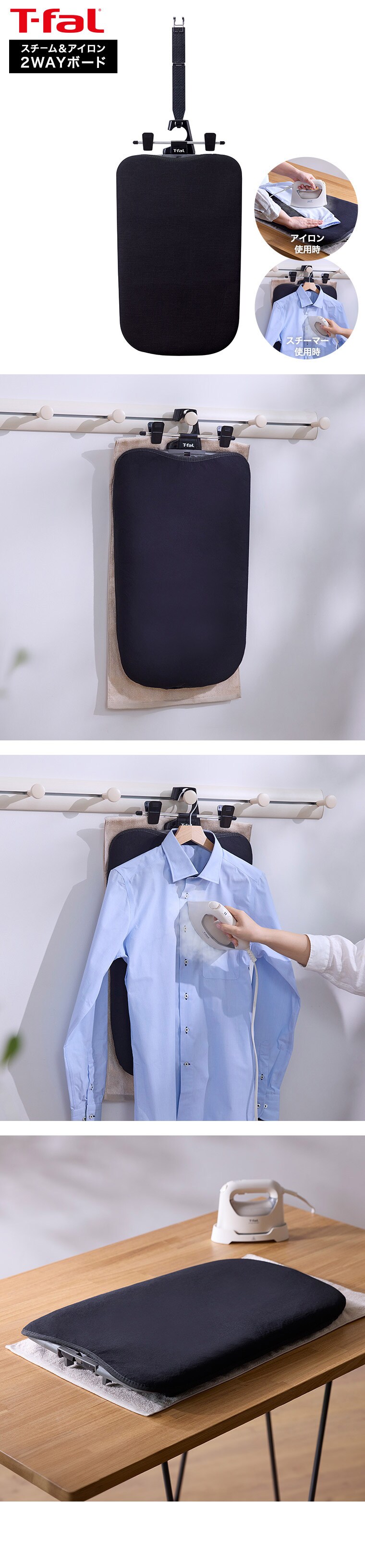 ティファール T-fal 2WAY スチーム&アイロンボード XD5400J0 送料無料 / アイロン台 アイロンマット スチームアイロン 衣類スチーマー アイロン ハンガー かけたまま 平型 平置き アイロン掛け ワイシャツ Tシャツ ティシャツ