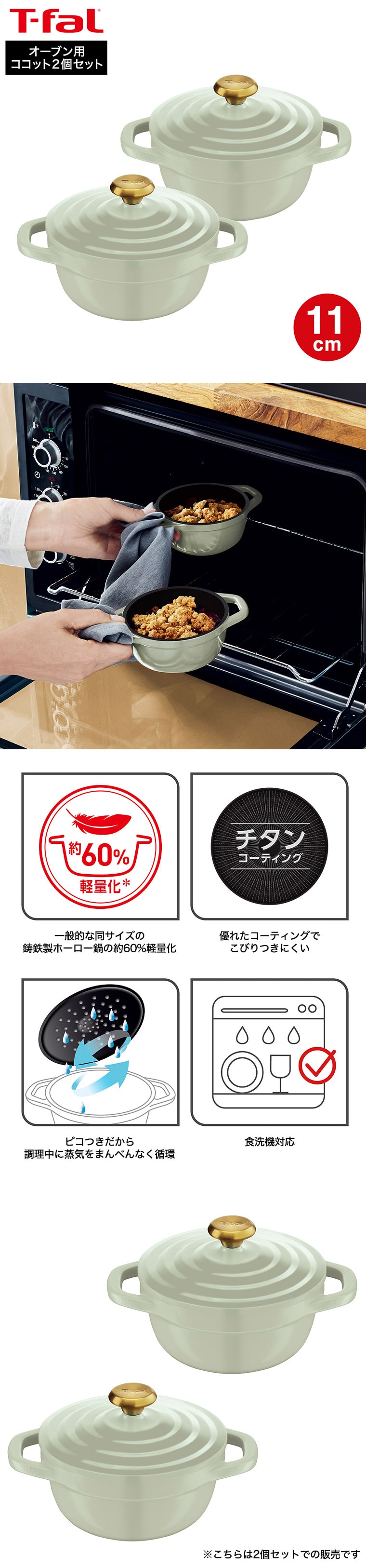 ティファール T-fal キャストライン エアココット セージグリーン ミニココット11cm セット2 E267S2 送料無料 / 2個セット オーブン専用 オーブン調理 食洗器可 IH不可 ガス火不可 軽量 キッチンツール 調理器具 tfal JGS