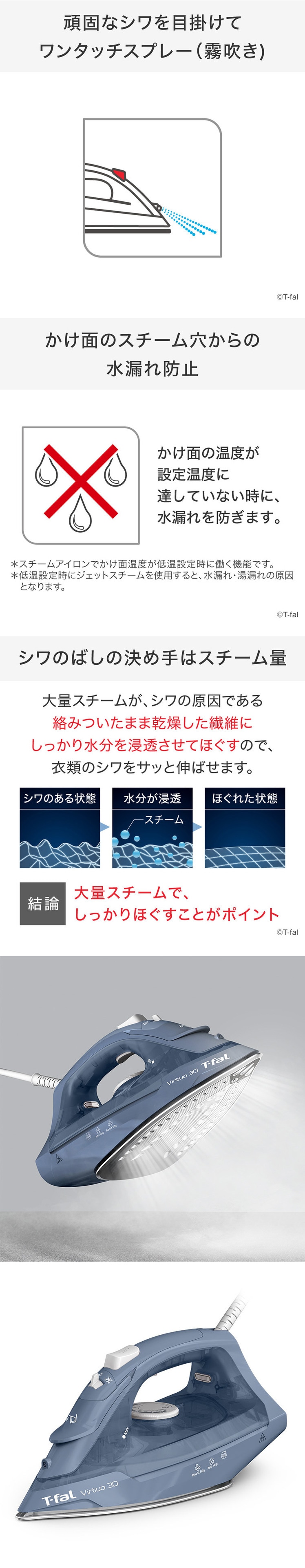 ティファール T-fal ヴァーチュオ30 ブルー FV2C66J0 送料無料 / スチームアイロン コード付きアイロン パワフル 大容量水タンク スチーム ジェットスチーム 生活家電 t-fal tfal JGS
