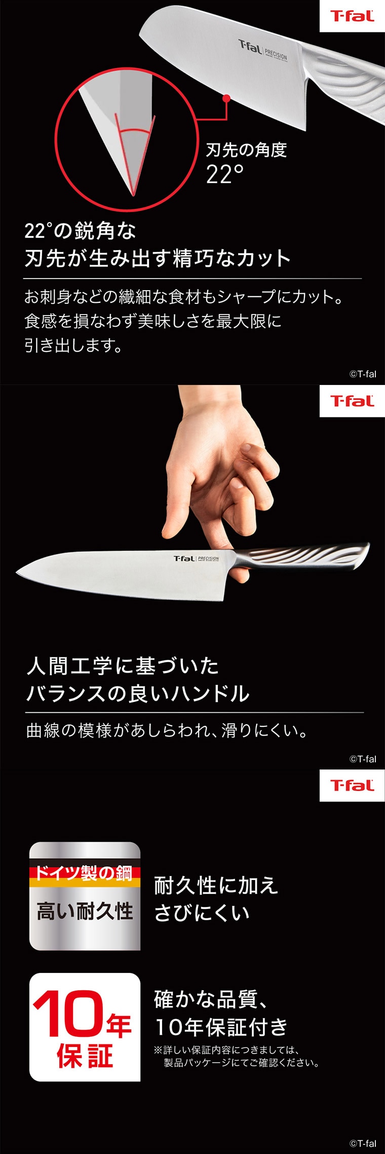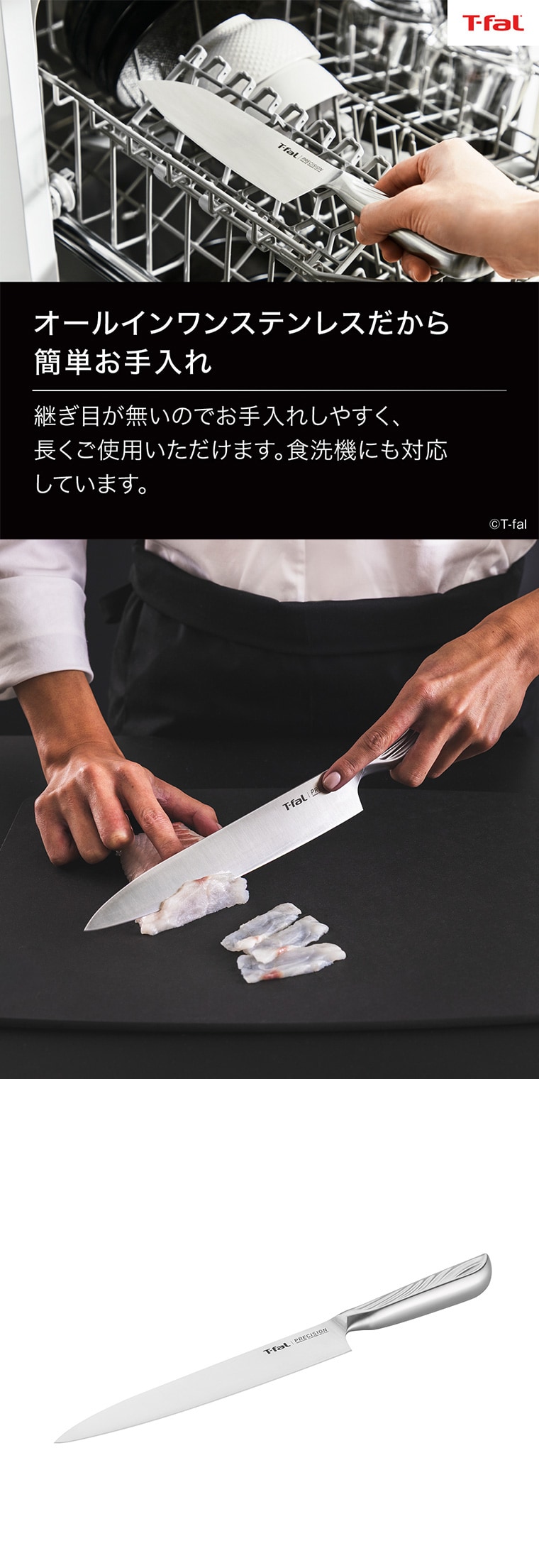 ティファール T-fal プレシジョン スライシングナイフ 20cm K27703 送料無料 / 包丁 ナイフ キッチンナイフ 薄切り包丁 筋引包丁 刺し身 ハム ステンレス 10年保証 食洗機対応 調理器具 キッチンツール JGS